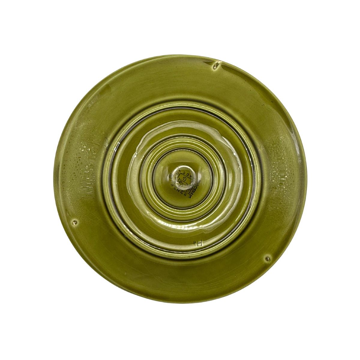 This chic shade of olive green oyster plate with scallop detail is such a rare find for us. It helms from the famed Faience D'art Proceram in France, circa 1960s. A perfect addition to your oyster plate collection or a perfect piece to start a new collection.