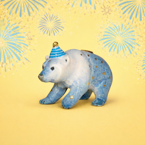 This typically fierce and ferocious creature is rendered harmlessly cute when crafted from porcelain and designed to sit atop all of your sweets, cakes, and other culinary creations. The Galaxy Bear Cake Topper invites nature to the party and comes dressed to impress in a cheerful striped hat.