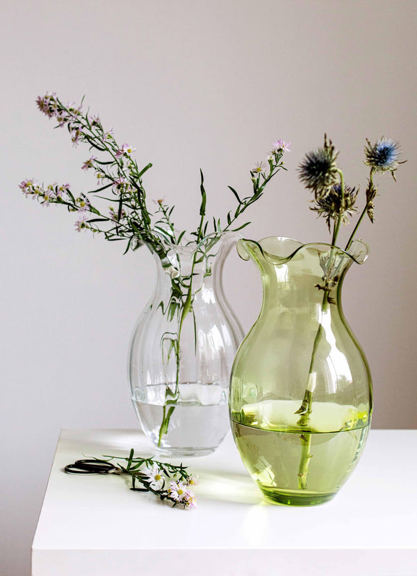 Vietri Hibiscus Glass Vertical Fluted Large Vase, Green