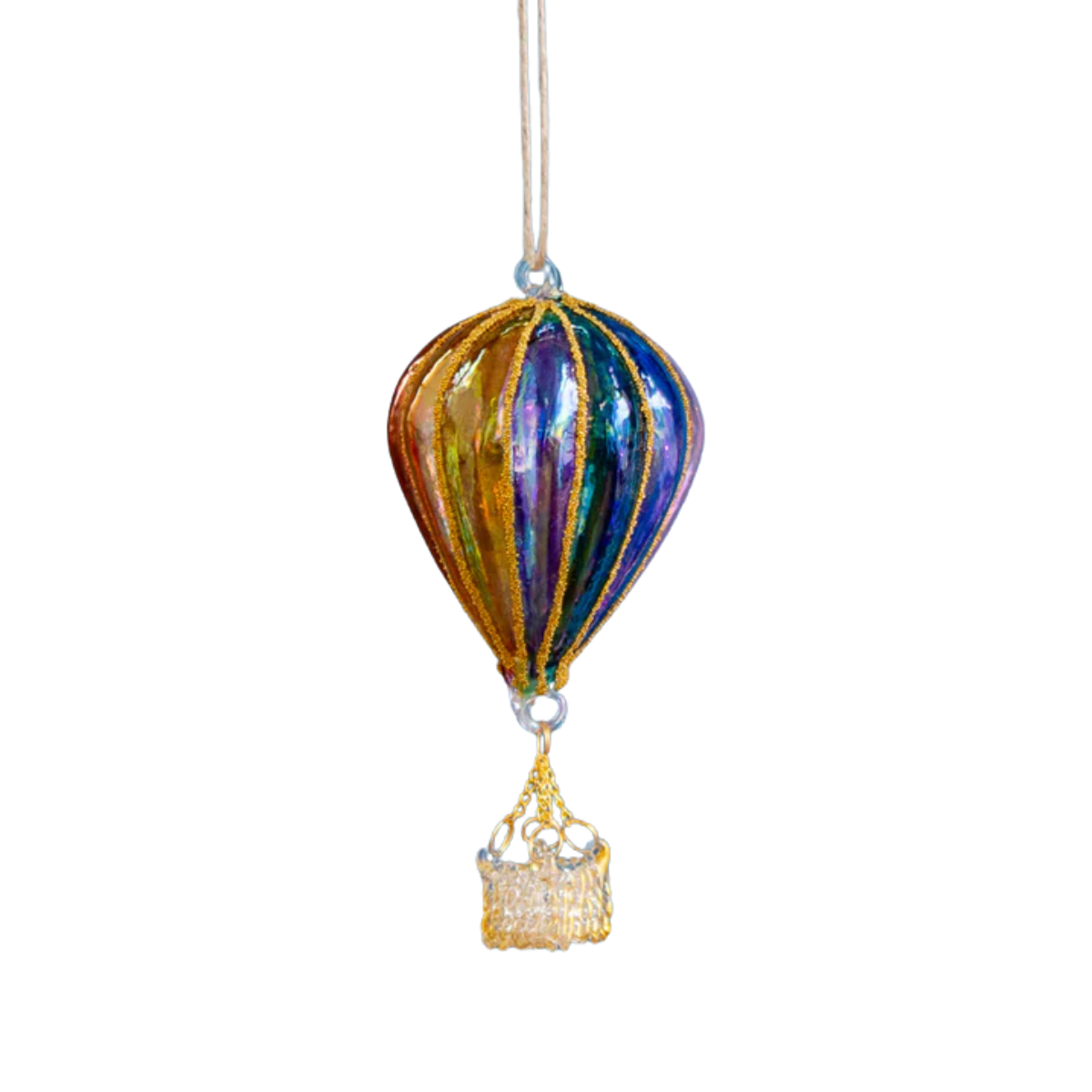 Rainbow Hot Air Balloon Ornament, Tranlucent