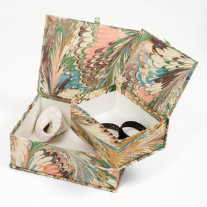 Keep your treasures safe in style with our hand-marbled keepsake box set in our signature Flatiron Feathers pattern. Perfect for letters, jewelry, photos, or everyday essentials, this set brings a perfect playful yet refined touch to your home.