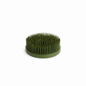These painted green flower frogs feature brass pins that are used to hold flowers in place. I love to use these in containers in lieu of floral foam. They are weighted, so there is no need for worry that they may float in water, and the sharp pens are constructed in the kenzan tradtion. Available in multiple sizes.