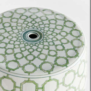 A classic chinoiserie design in shades of green & white. How refreshing! The color green is known to have a harmonizing, balancing effect, and is an inspired design choice for this traditional stool. A welcome addition, adding stability and calm to the well-appointed bookshelf, mantel or entry console.