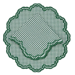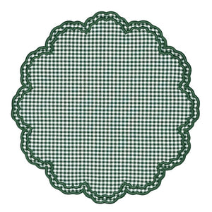 Set your table with our delightful dark green gingham Bettina Placemats, beautifully adorned with dark green wavy scalloped embroidery. This timeless design brings charm to every dining occasion.