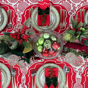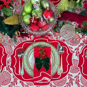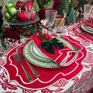 These Belle placemats provide the foundation for memorable holiday meals. The red linen coordinates beautifully with traditional Christmas colors while the precise white embroidery adds sophisticated detail that guests notice and appreciate.