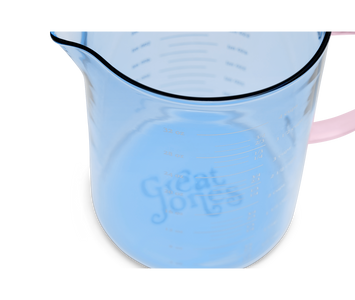 Why should any part of your kitchen be boring? Our Great Jones glass measuring cups are colorful and highly functional, with clear, printed measurements in ounces, cups, and milliliters (no mental math!). Made from sturdy borosilicate glass, this spacious 4-cup size can go from prep to serving and be placed right on your table — no extra vessel needed for your vinaigrette or freshly mixed cocktail.