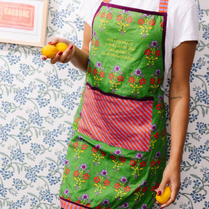 For the ones who know that cooking can get a little chaotic. This apron is for those who say, ‘This is why we can’t have nice things,’ because sometimes, the mess is part of the fun. Cooking made chic - this pretty printed apron elevates the everyday and adds a colorful charm to your kitchen.