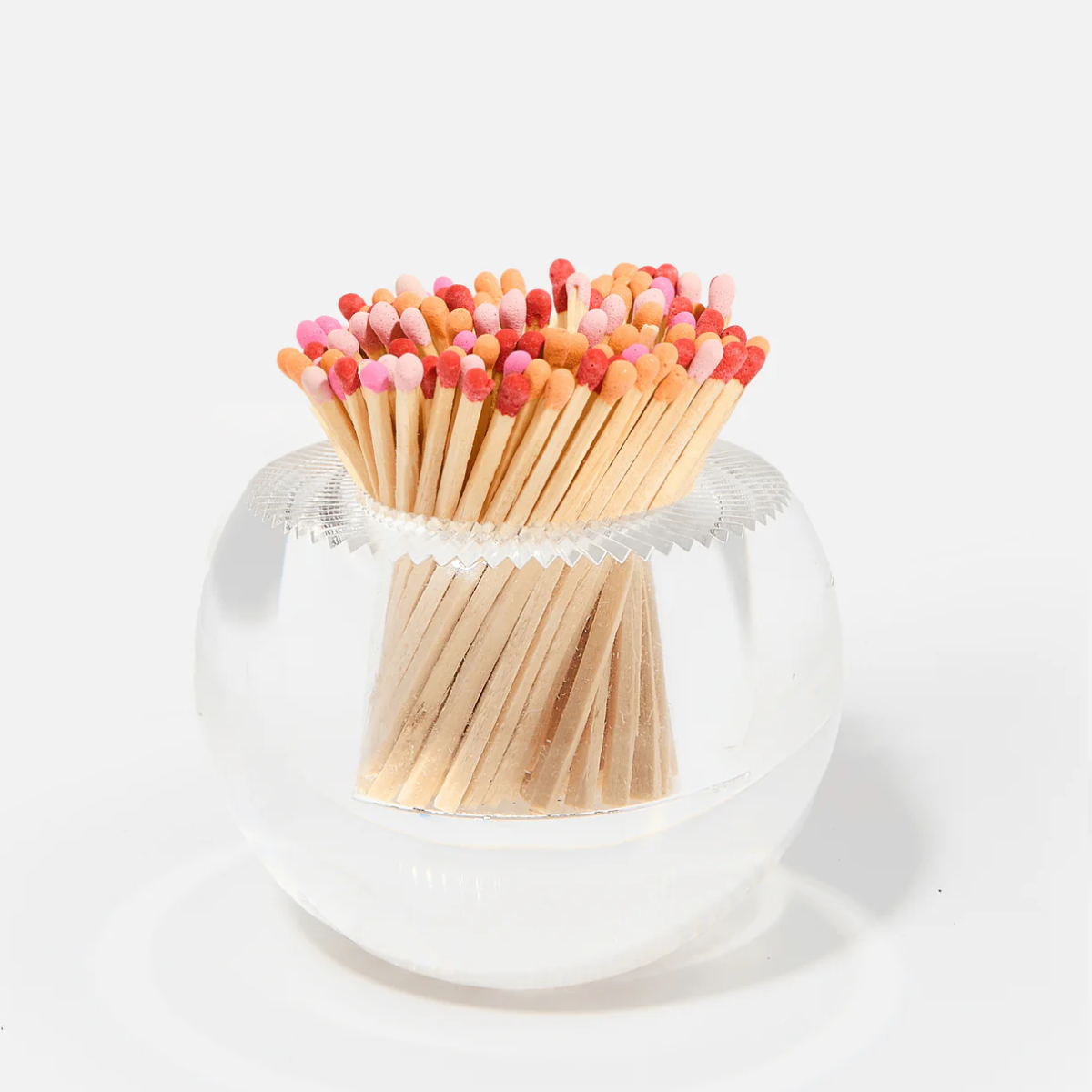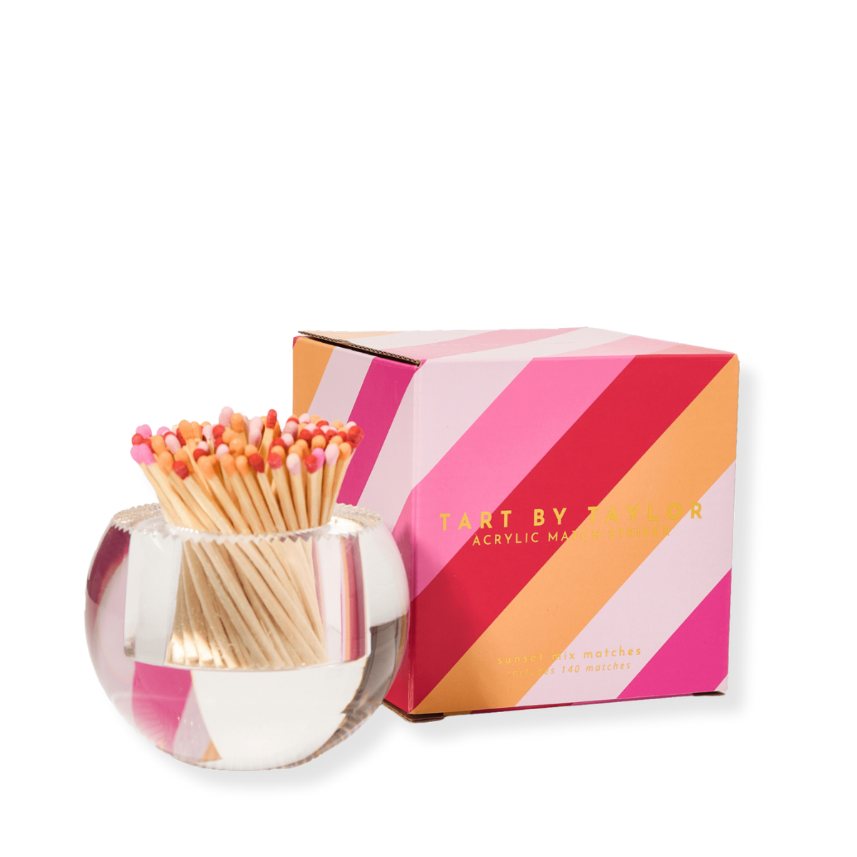 We are head over heals in love with these acrylic match strikers by Tart by Taylor. The clear acrylic vessel is available in a variety of match colors and would look so chic on a cocktail table. They also make the perfect gift for that hard to by for friend! Features a strike pad on the bottom and comes with 140 matches.