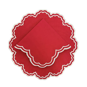 Set a beautiful holiday table with red Bettina Napkins elevated with white wavy, scalloped embroidery. Your guests will feel utterly cherished.