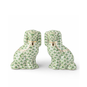 How elegant and stately is this pair of regal spaniels in a handpainted fish scale motif with 24 carat gold accents?
