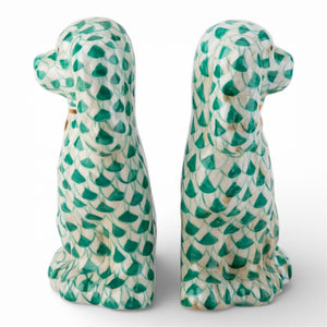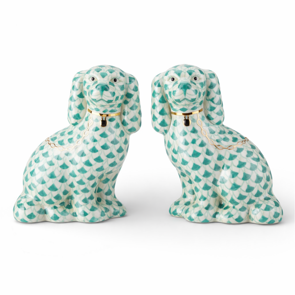 How elegant and stately is this pair of regal spaniels in a handpainted fish scale motif with 24 carat gold accents?