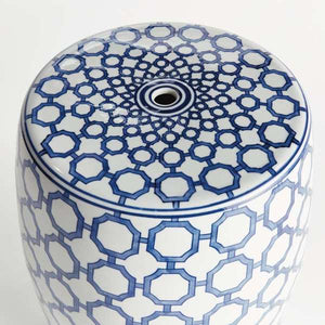 In design, the color blue is known to evoke a feeling of calm, trust and reliability, and is an inspired design choice for this traditional stool. A classic chinoiserie-inspired stool adorned with a link motif in blue and white. A signature color combination for renowned designer Barclay Butera, and a welcome addition to the well-appointed home.