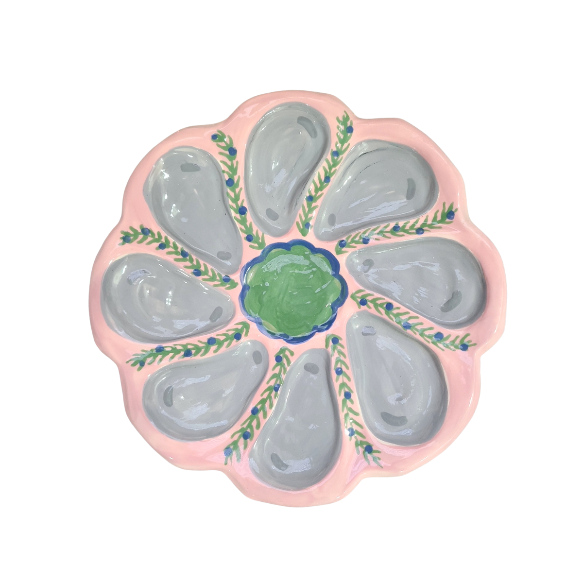 Hand-Painted Oyster Plate, Pink/Green Scallop