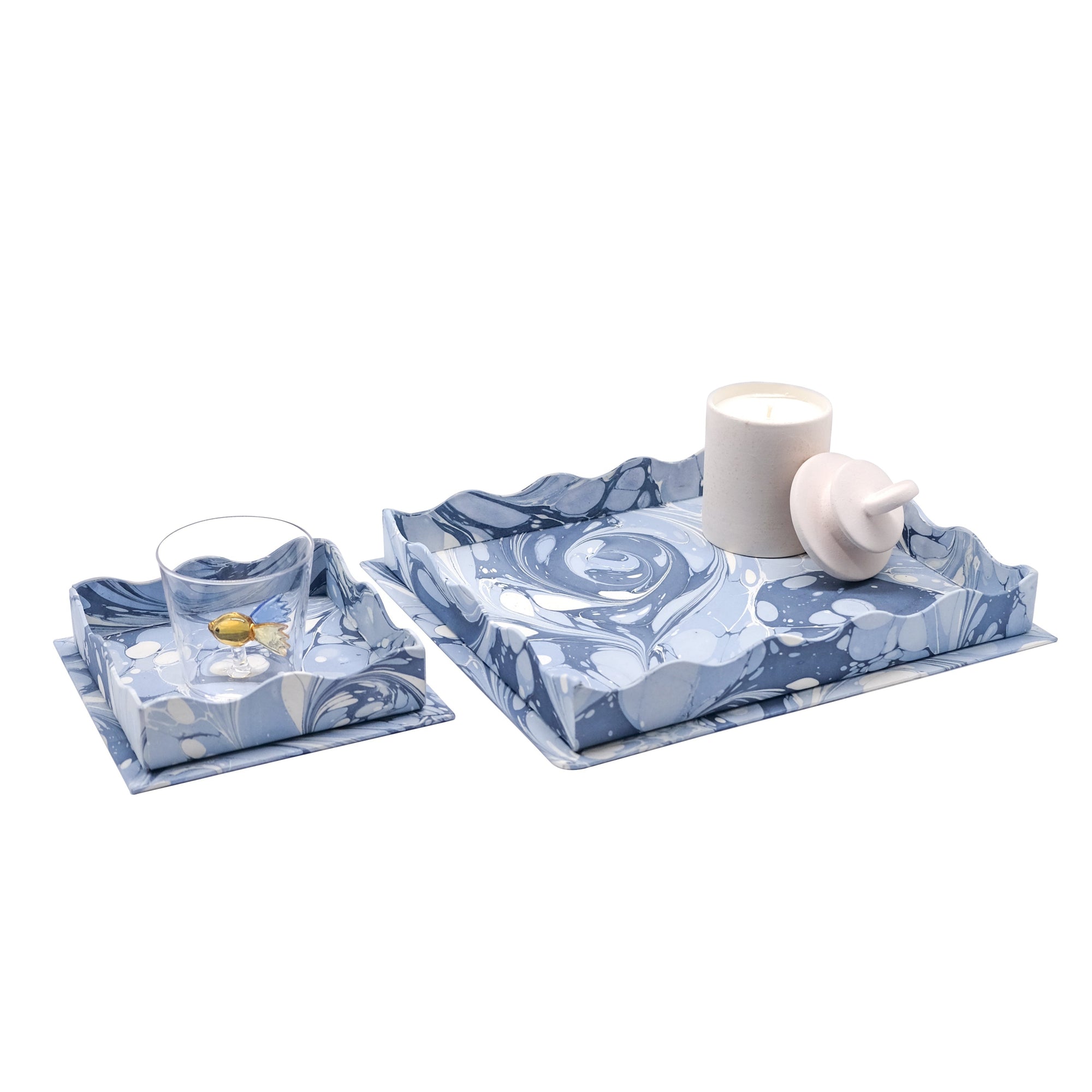 We think this set of two trays, crafted of hand marbled paper, is one of the chicest things you could add to your home right now. Featuring a scalloped edge motif, they are perfect perched on a cocktail table, or on a desk to collect papers and letters.
