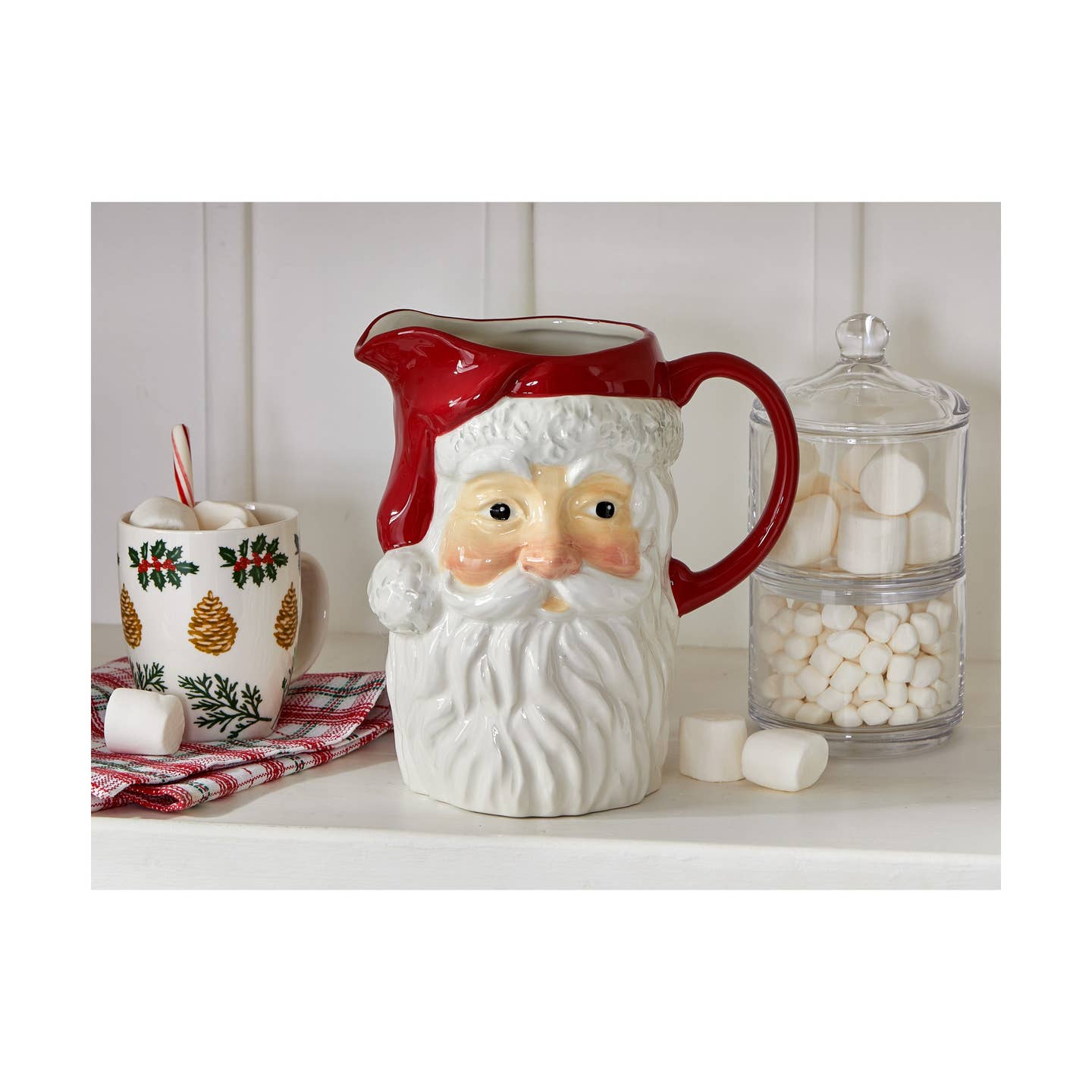 Serve your holidays drinks in style this season with this adorable ceramic Santa pitcher!