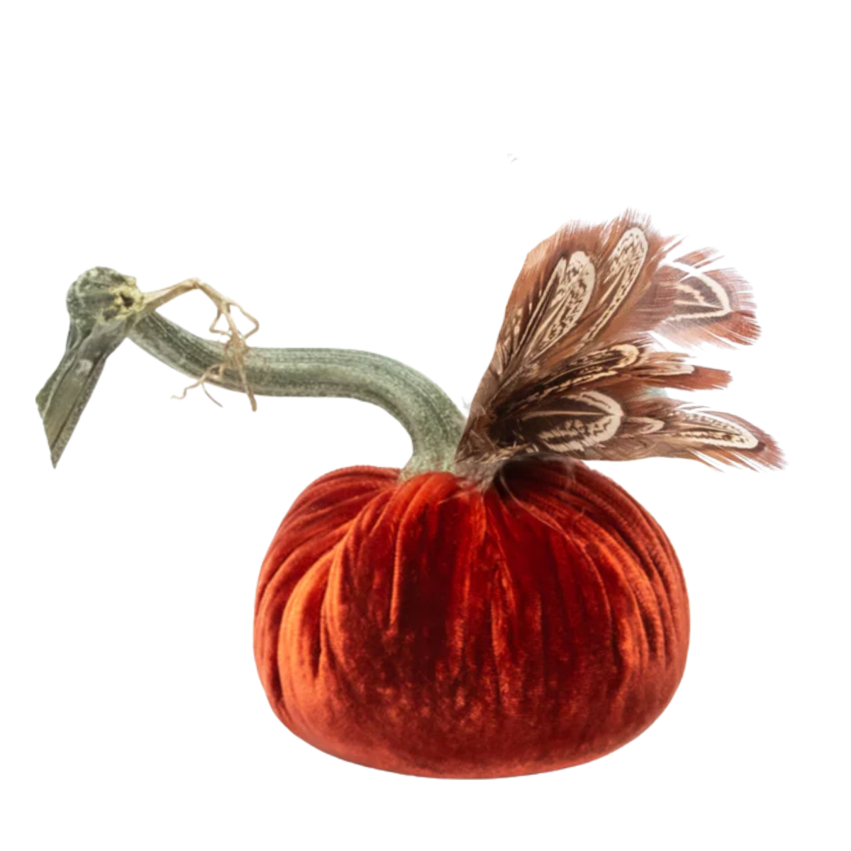 Hot Skwash Silk Velvet & Pheasant Plume Pumpkin, Fire Multi Sizes