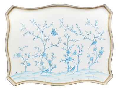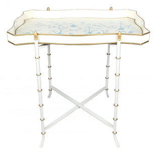 What sets this piece apart is its accompanying table, perfectly designed to hold the tray at an ideal height for easy access. The tray is removable, allowing for effortless transport and versatile use throughout your home. Whether you're entertaining guests or simply showcasing your favorite items, this combination of artistry and functionality makes it a perfect gift or a delightful centerpiece in your own space. Elevate your decor and hosting style with this exquisite hand-painted tray and stand set!