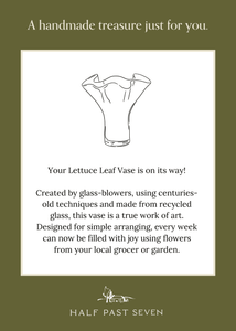We have been such fans of the beautiful pieces from Half Past Seven, so its not surprise how happy we are to be able to offer them at Hunt & Bloom. Founders Jen and Margaret work with artisans to create stunning works of art in recycled glass using time honored traditions. Their designs are meant to stand the test of time and be passed on for generations, not trendy pieces meant to be enjoyed for a season or two. Their signature Lettuce Leaf vases have become an iconic design that we believe every home needs, and their drinkware will elevate any place setting from casual to formal. Crafted in Mexico, all of Half Past Seven’s wares make are meant to be used every day, not just for special occasions. We can’t wait for you to fall in love with them just as much as we have.