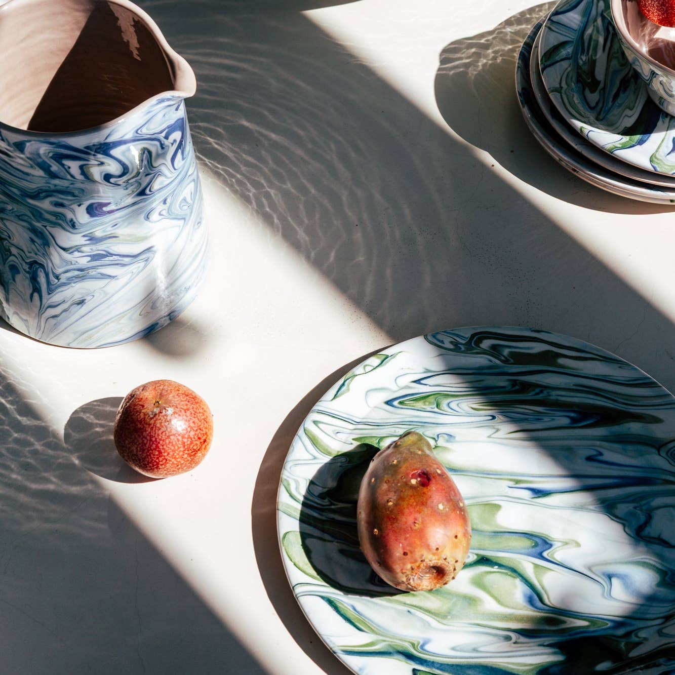 Marbled Dinner Plate, Blue and Green