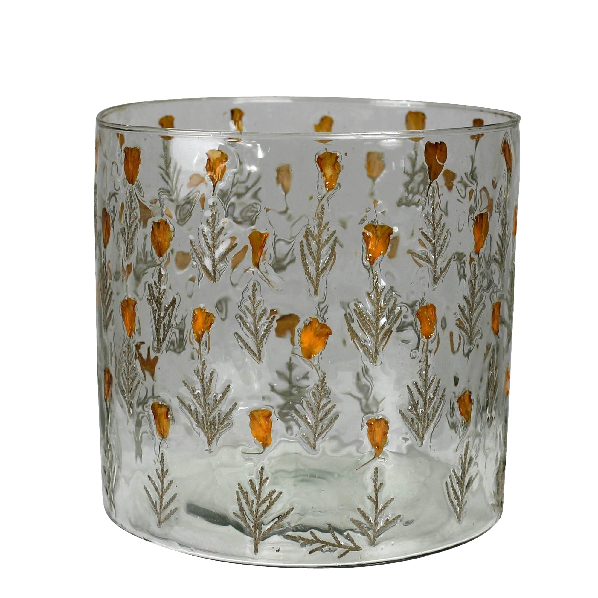 We love candlelight when entertaining. It really sets the mood and tone for a gathering of any size. These enameled glass hurricanes come in a variety of styles and incorporate dried botanicals that have been preserve forever as they are applied to glass with enamel. The glow from the candlelight is so beautiful. We love to group different sizes and styles of these hurricanes for such a dramatic impact.