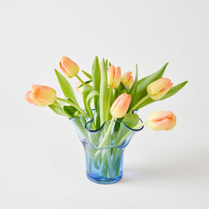 Elevate your home decor with the Petite Lettuce Leaf Vase in Blue—a handcrafted masterpiece that brings elegance to any space. Mouth-blown from recycled glass in San Miguel de Allende, Mexico, this vase embodies both sustainability and artistry. Its compact size makes it perfect for side tables, bookshelves, or kitchen corners. Each piece is unique, showcasing subtle variations in color and form.