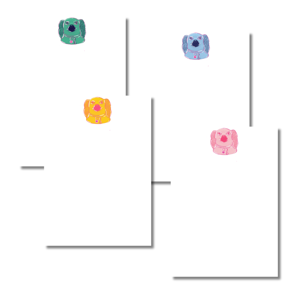 Set of 4 Pups Staffy Notepads - one each of pink, green, blue & yellow.