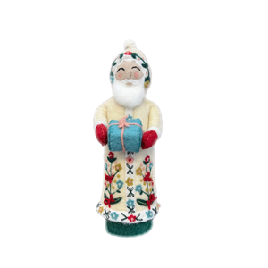 Add a touch of holiday whimsy to your home decor with our hand-felted Santa Mantel Topper! This quirky and playful topper features a jolly Santa design and is the perfect addition to any mantle. Spread holiday cheer with this fun and unique decoration. 100% wool. Handmade in Nepal.