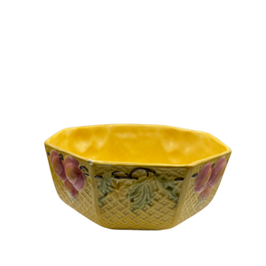 I love this vintage German majolica bowl, with its basketweave relieft and handpainted fruits and flowers motif.  It's perfect for serving, but also would look fabulous at the center of a breakfast table filled with fruit.