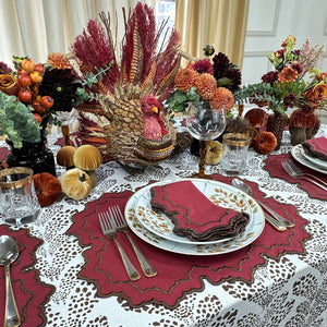 There's something deeply satisfying about setting a table that feels both effortless and considered. The Whitley Napkin embodies this philosophy—in warm burgandy with rich cocoa brown detailing that adds texture and interest without overwhelming your carefully curated tablescape.