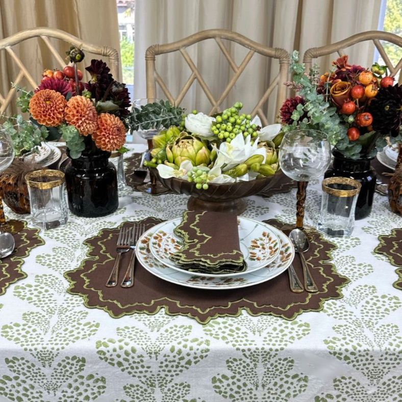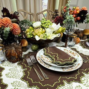 There's something deeply satisfying about setting a table that feels both effortless and considered. The Whitley Napkin embodies this philosophy— in rich brown with sage green detailing that adds texture and interest without overwhelming your carefully curated tablescape.