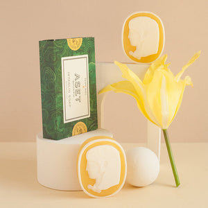 Painstakingly cast in two parts. The white relief is an unscented soap, hardened with a touch of beeswax to give longevity through use to the classical detailing. While the rich body of these soaps is made using Rowse honey, giving it excellent qualities to calmly clean and moisturise.
