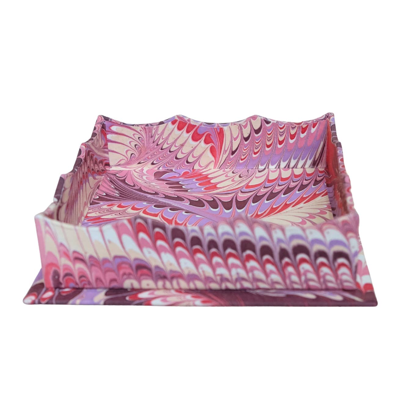 We think this set of two trays, crafted of hand marbled paper, is one of the chicest things you could add to your home right now. Featuring a scalloped edge motif, they are perfect perched on a cocktail table, or on a desk to collect papers and letters.