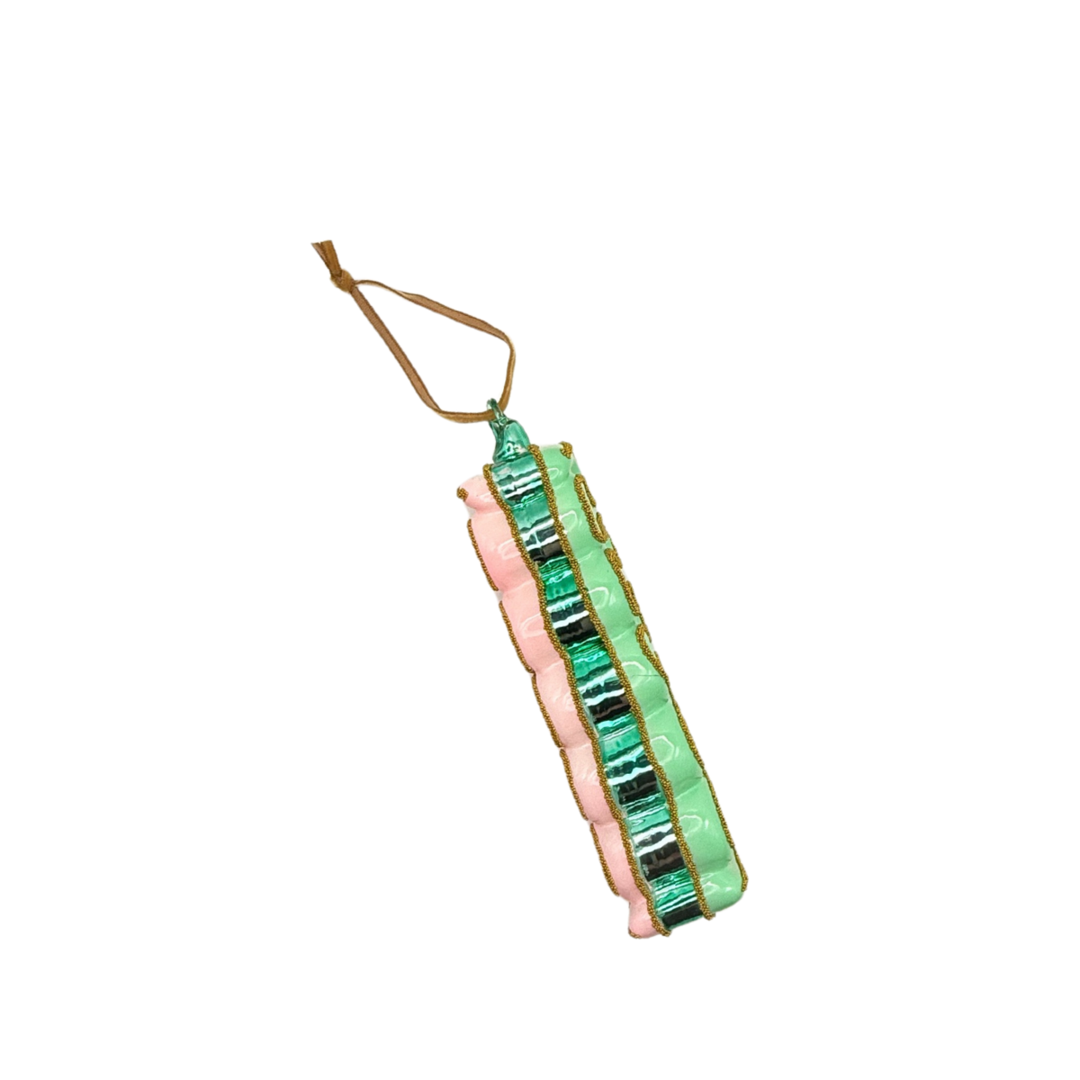 Welcome to Glitterville's enchanting world! Our Ribbon Candy Ornament, available in 12 colors, each is meticulously crafted from glass and measures 2" x 5.25". Reflecting our founder, Stephen Brown's vision of infusing everyday life with sparkle and joy, these ornaments are the epitome of whimsical charm. Crafted with the utmost attention to detail, they bring a magical touch to your home decor. As seen in homes worldwide, and even the White House, let our ornaments make your world shine brighter. Celebrate life's magical moments with Glitterville.