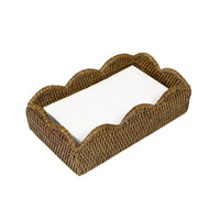 Caspari Rattan Scalloped Guest Towel Napkin Holder, Natural