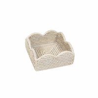 Caspari Rattan Scalloped Cocktail Napkin Holder, Cream