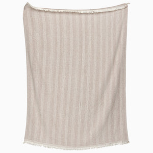 A classic herringbone weave in warm coffee tones and cozy yarn dyed woven cotton. We added fringe to two sides for extra fun.