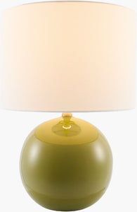 I absolutely love the sleek nature of this petite lamp, and its high glass ceramic finish. Topped with a white drum shade.