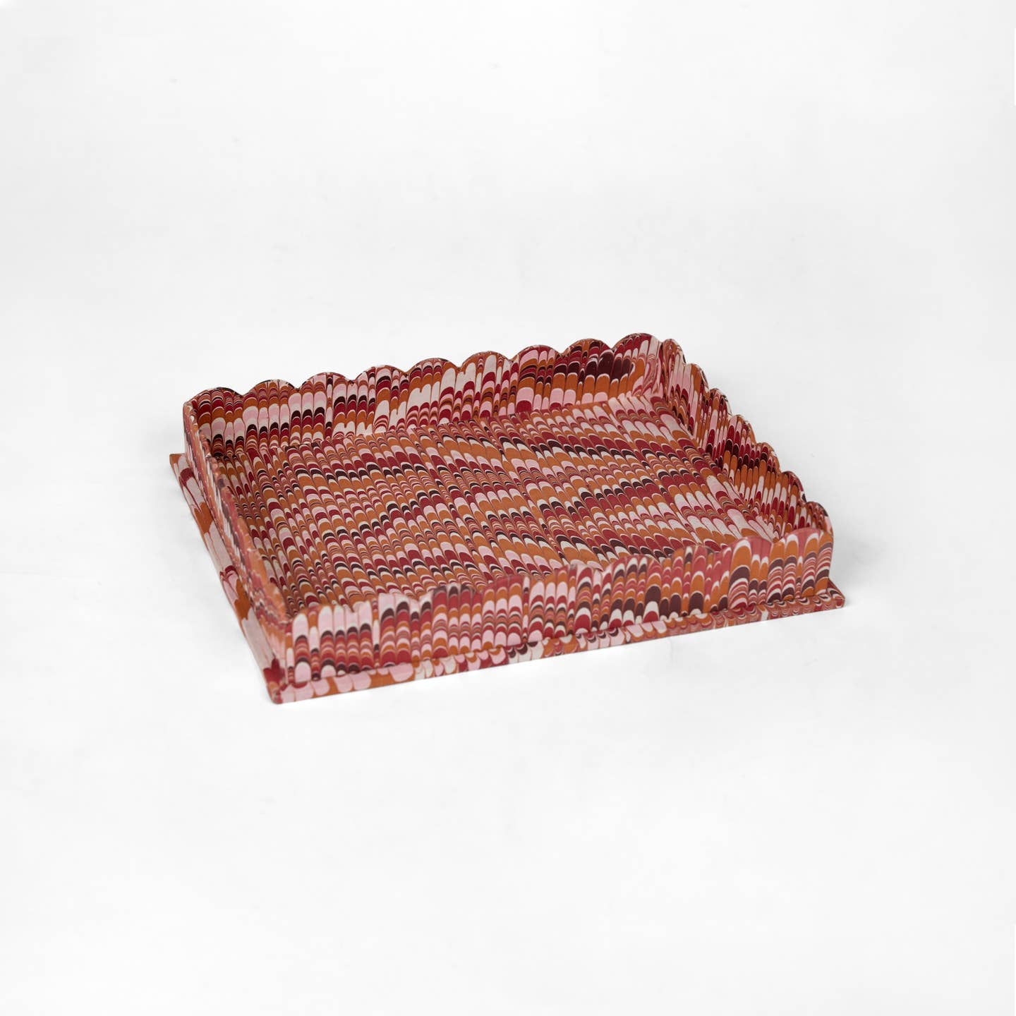 We think this set of two trays, crafted of hand marbled paper, is one of the chicest things you could add to your home right now. Featuring a scalloped edge motif, they are perfect perched on a cocktail table, or on a desk to collect papers and letters.