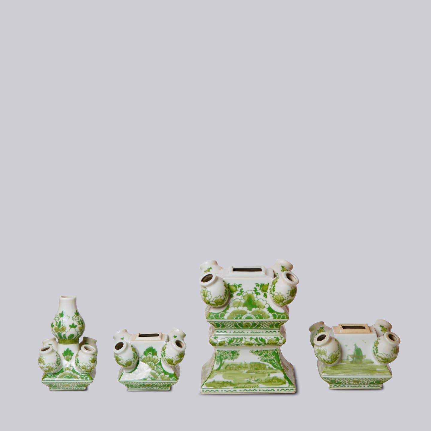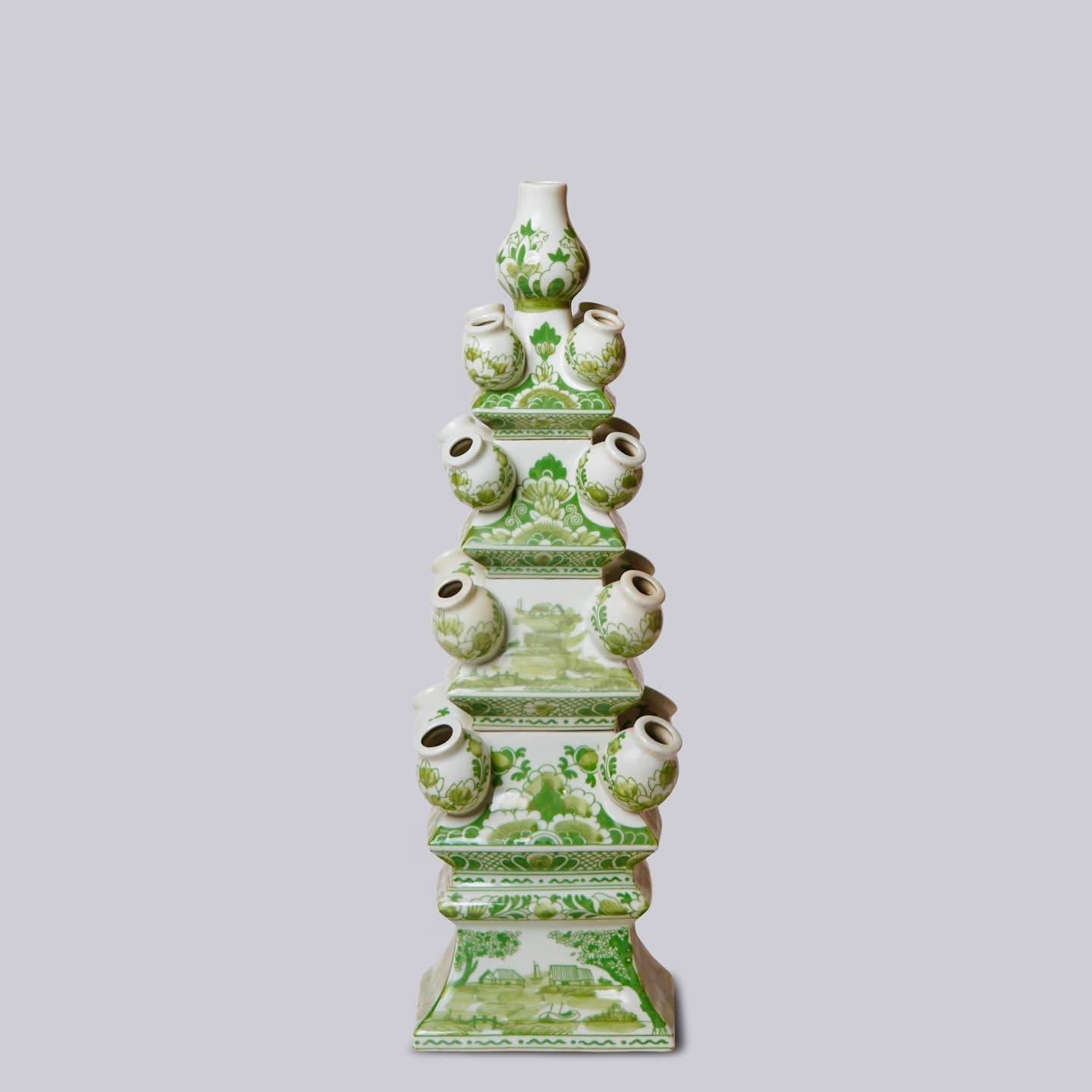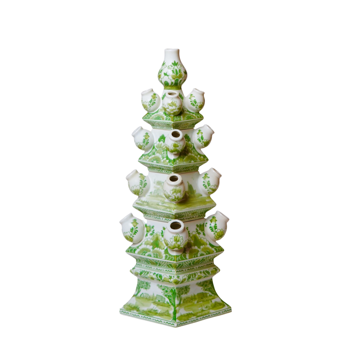 You know how much we love a tulipiere, so we are obviously obsessed with this grand scale hand painted porcelain creation and its white and apple green color palette. At almost two feet high, this four part tulipiere makes such a dramatic statement in any decor.