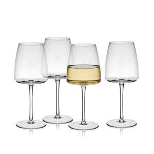 This Cora White Wine Glass Set features unexpected curves that flare outward to wide bases, with tapered tops designed to capture the bouquet of wine and spirits to heighten your experience.