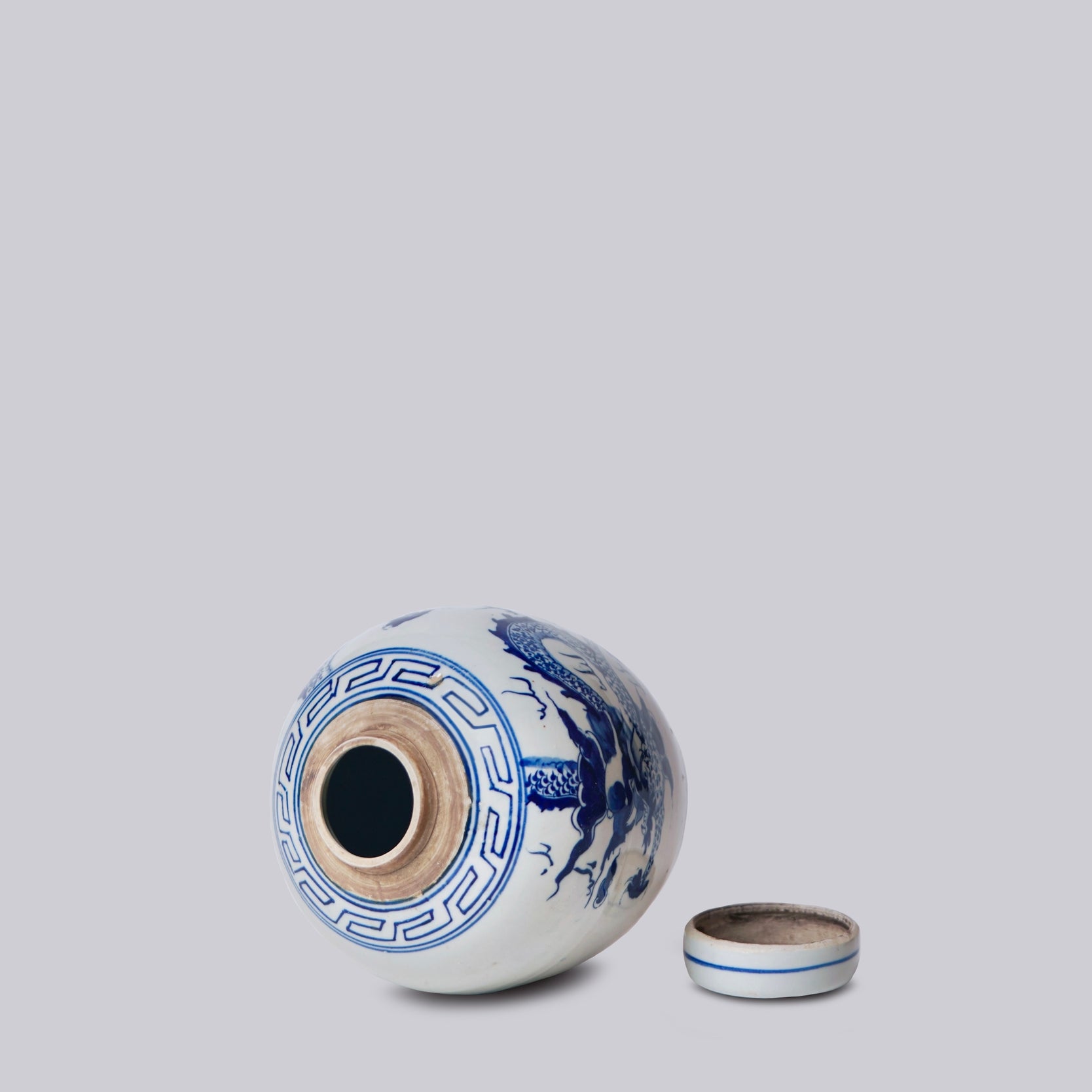 We love these smaller scale versions of classic Chinese blue and white tea caddies. They are perfect to stash keys or paper clips in, and look great in groups with other blue and white pieces.